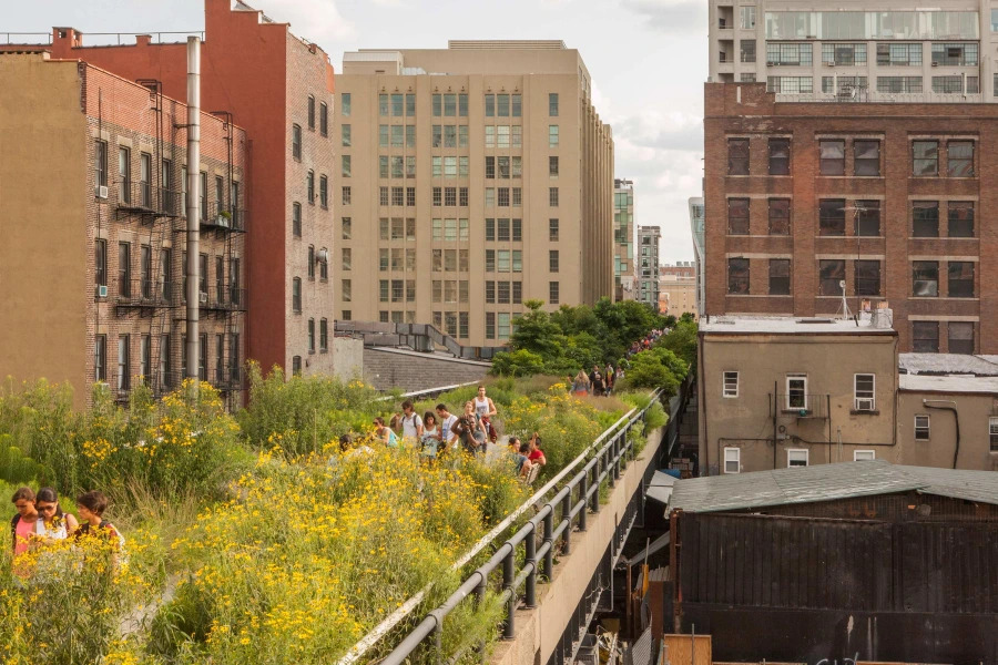 Construído onde outrora funcionou uma linha ferroviária elevada dedicada ao transporte de cargas, o parque forja um aprazível caminho suspenso e verdejante ao longo das regiões de Meatpacking District e Chelsea, numa passarela forrada de gramíneas e flores. Tudo isso sem se esquecer da arte: em junho, o High Line ganha mais uma obra, Windy, da artista Meriem Bennani, inspirada justamente na experiência de caminhar nesse parque nas alturas.