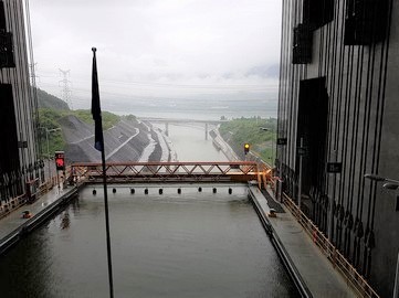 A Represa das Três Gargantas interrompe o fluxo do rio Yangtze na província de Hubei. O lago produzido pelo alagamento tem 660 km de comprimento e 1,12 km de largura, em média, com uma superfície total de 1.045 km².