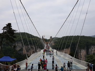 A Passarela de Cristal na foto abaixo, é uma das muitas atrações da Montanha de Tianmen.