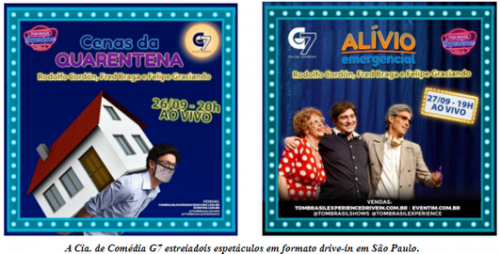 Em 2020, após o fechamento dos teatros, o G7 apresentou-se em diferentes espaços “drive in” de Brasília, com mais de cinco comédias criadas para este formato, tornando-se a Cia. de Comédia mais especializada em espetáculos de humor neste espaço do país, inclusive, apresentando-se para mais de 600 carros na abertura do Drive Show em, o maior festival drive in do Brasil, em frente ao estádio Mané Garrincha em Brasília.