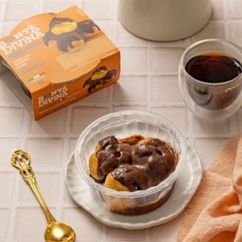 Decorado com listras de chocolate amargo, é um produto congelado que descongela rapidamente — pronto para consumo em 30 minutos, mantendo sabor e textura superiores por até 5 dias após o descongelamento.