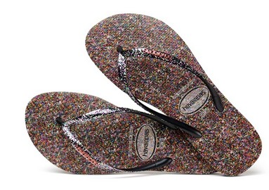 A Havaianas Carnaval vem no modelo slim com glitter no solado e nas tiras.