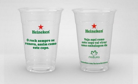 Com o propósito de estimular ações de impacto positivo, contribuindo para a economia circular dos produtos, e fazer um convite para que as pessoas sejam agentes de transformação da sociedade, as marcas Heineken® e Natura firmam parceria inédita para o Rock in Rio 2019, que mais do que o maior festival de música e entretenimento do mundo é uma experiência de transformação. A iniciativa transformará os copos de plástico, descartados durante os sete dias do festival, em embalagens da linha Natura Humor. A expectativa é de que aproximadamente 2,5 milhões de copos sejam reciclados.