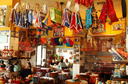 Apesar de não venderem mais goiabada cascão ou cereais a granel, a mágica casa de esquina ainda guarda os resquícios da antiga mercearia, com azulejos brancos nas paredes e objetos pendurados pelo teto. Lá estão relicários, vassouras, panos de prato bordados, sacolas de feira, móbiles coloridos e artesanatos vários de garimpo das sócias. E o armazém que virou restaurante não cansa de surpreender seus visitantes, encantando os olhos e alimentando a alma.