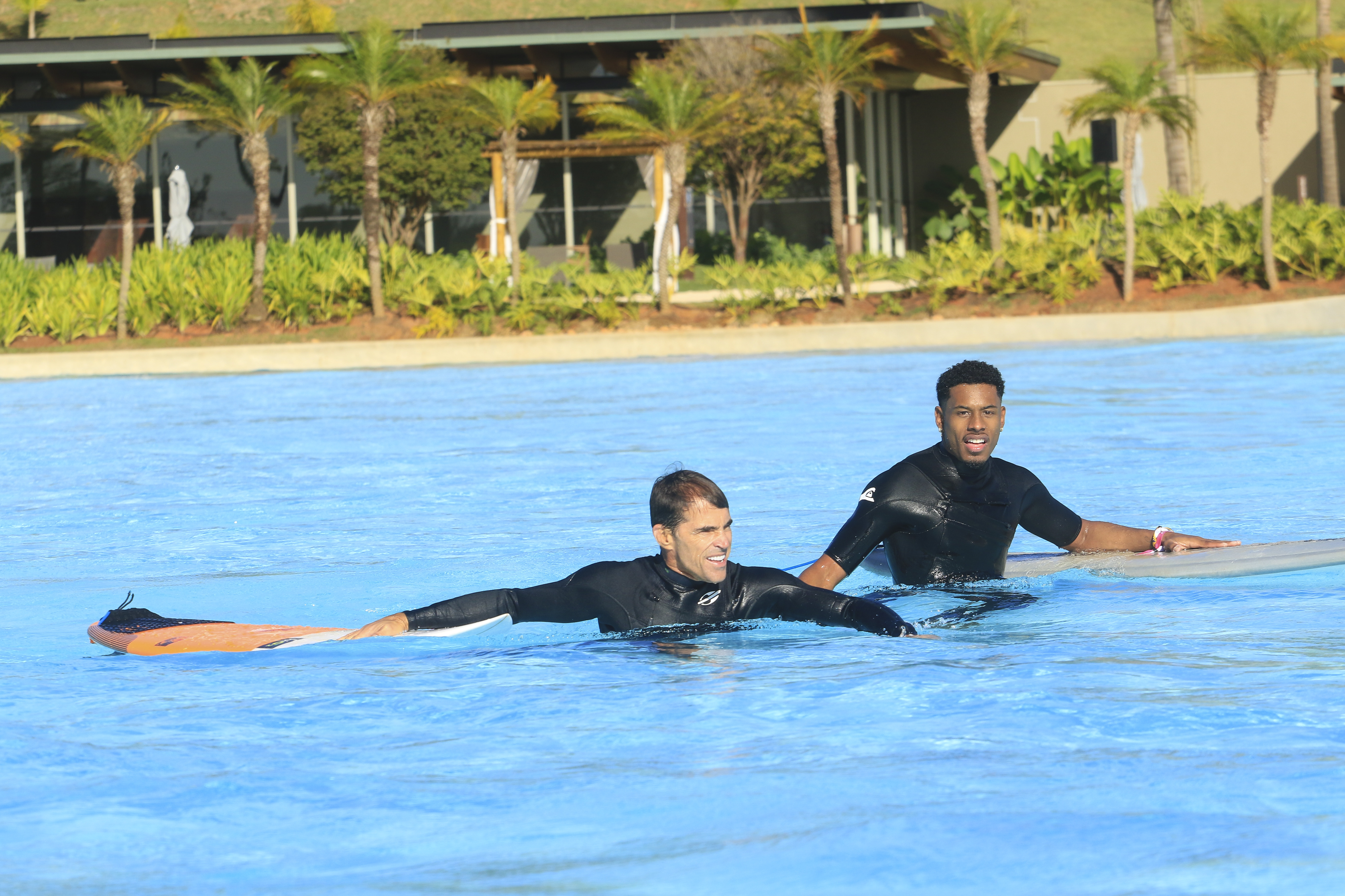 “Foi muito legal. Curti bastante a nova experiência. Sempre gostei do esporte, sempre esteve presente na minha vida como espectador. E agora praticando o esporte fico muito honrado e grato, ainda mais do lado de pessoas que eu amo e admiro, como o Scooby. Curti bastante”, comentou Paulo André, que se aventurou pela primeira vez nesse tipo de ambiente. “Eu nunca nem tinha subido na prancha, quiçá na piscina de ondas. Espero ter mais oportunidades”, completa.
