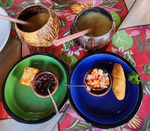 – Baião de Dois Vegano, composto de arroz, feijão de corda, banana da terra, mandioca e abóbora.