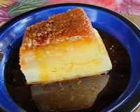Um delicioso pudim de tapioca (na foto à esquerda).
